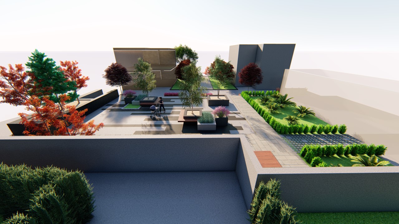Yaklaşık 2000 metrekarelik bir alanda toplu konut projesi tasarlandı. Ortak alanların geniş ve işlevsel olmasına özen gösterilerek, her yaş grubuna hitap edecek bir bahçe tasarlandı. Betonarme yapının baskısını azaltmak öncelikli hedeflerden biri oldu ve bu doğrultuda yeşil alanlar, yürüyüş yolları ve dinlenme alanları planlandı. Doğal peyzaj unsurları kullanılarak hem estetik hem de fonksiyonel bir yaşam alanı oluşturuldu.